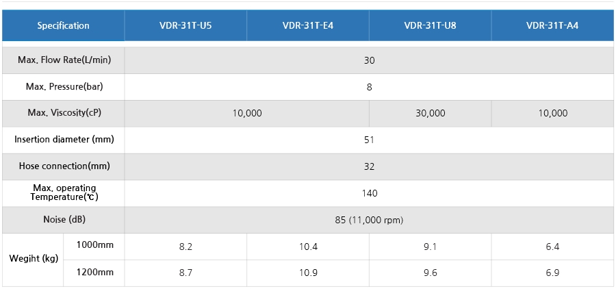 - Suction Dia. : Rc1/4, Discharge dia. : Rc1/2