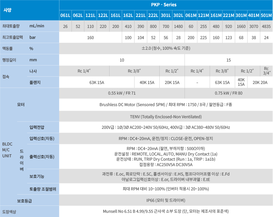 일반적으로 정량펌프는 정량적이면서 맥동이 발생되는 단점을 가지고 있습니다. 천세무맥동 정량펌프는 이러한 정량펌프의 단점을 극복한 획기적인 제품입니다. 특수 사공된 등속도캠과 2연식의 접액부를 적용, 토출유량의 무맥동화를 실현하였으며 인버터에 의한 유량 가변형으로 빠른 응답성과 정밀 조절이 가능하고 현장의 수동운전과 원격운전이 가능합니다.