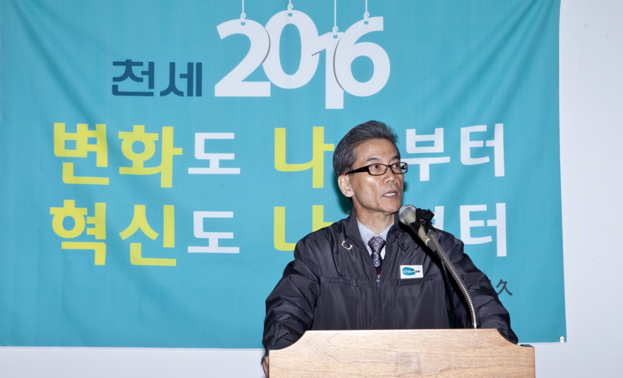 2016년 1월 4일(월) 본사 3층 강당에서    2016년 천세산업(주)의 첫 걸음을 알리는 시무식이 진행되었습니다.    이충구 대표이사의 신년사와 부서발령에 따른 발령장 수여식 을 시작으로   권호남 공장장의 경영보고, 구호제창, 신년하례, 사진촬영이 진행되었으며,   전직원이 함께 떡국을 나눠먹는 것을 끝으로 시무식을 종료하였습니다.   2016년에도 고객의 입장에서 생각하고, 고객만족을 위해 최선을 다하는 천세산업(주)가 되겠습니다.   감사합니다.