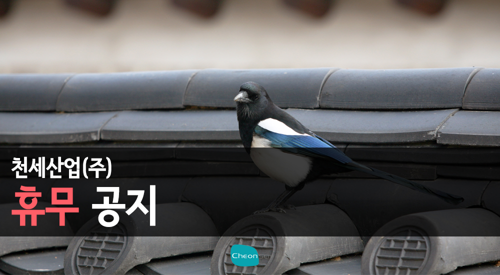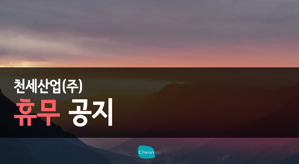 안녕하세요.     천세산업(주) 입니다.    당사는 2월 4일(월)부터 2월 6일(수)까지    설 연휴로 인해 휴무를 진행합니다.    휴무중에도 당직 근무가 진행되오니,    문의사항은 아래의 연락처로    연락 주시기 바랍니다.    감사합니다.            === 아래 ===         본          사 : 031)465-1003 반 월 공 장 : 031)493-1003  대전영업소 : 042)862-1003 부산영업소 : 051)502-1003