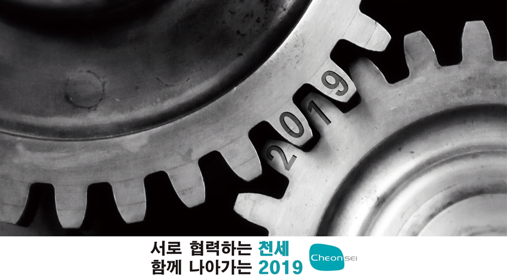 안녕하세요. 천세산업(주)입니다.   2019년 1월 2일(수) 본사 3층 강당에서     천세산업(주) 2019년 시무식이 진행되었습니다.     신효순 대표이사의 신년사와 권호남 이사의 경영보고,    신년맞이 선물 증정, 부서발령에 따른 발령장 및 진급 수여식,    신입사원 소개, 캐치프레이즈 제창, 사진 촬영이 이어졌고,   전직원이 함께한 점심 식사를 끝으로 시무식은 종료되었습니다.    2019년 천세산업(주)는 긴밀한 협력을 바탕으로,   예년보다 더 나은 품질, 서비스를 제공하도록 노력하겠습니다.   올 한해, 천세산업(주)의 모든 고객분들의 안녕과 건강을 기원합니다.    감사합니다.