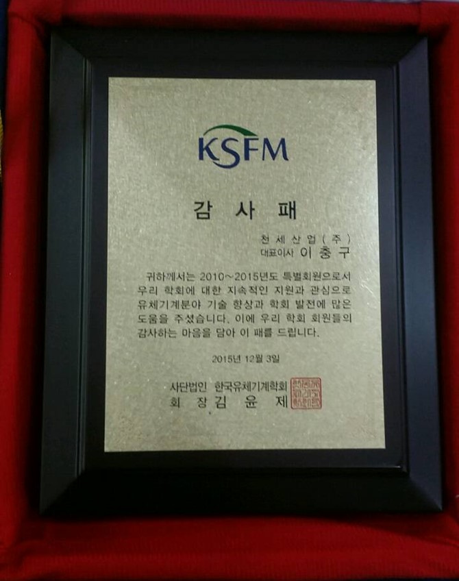 천세산업(주)의 이충구 대표이사님께서는 유체기계분야 기술 향상과