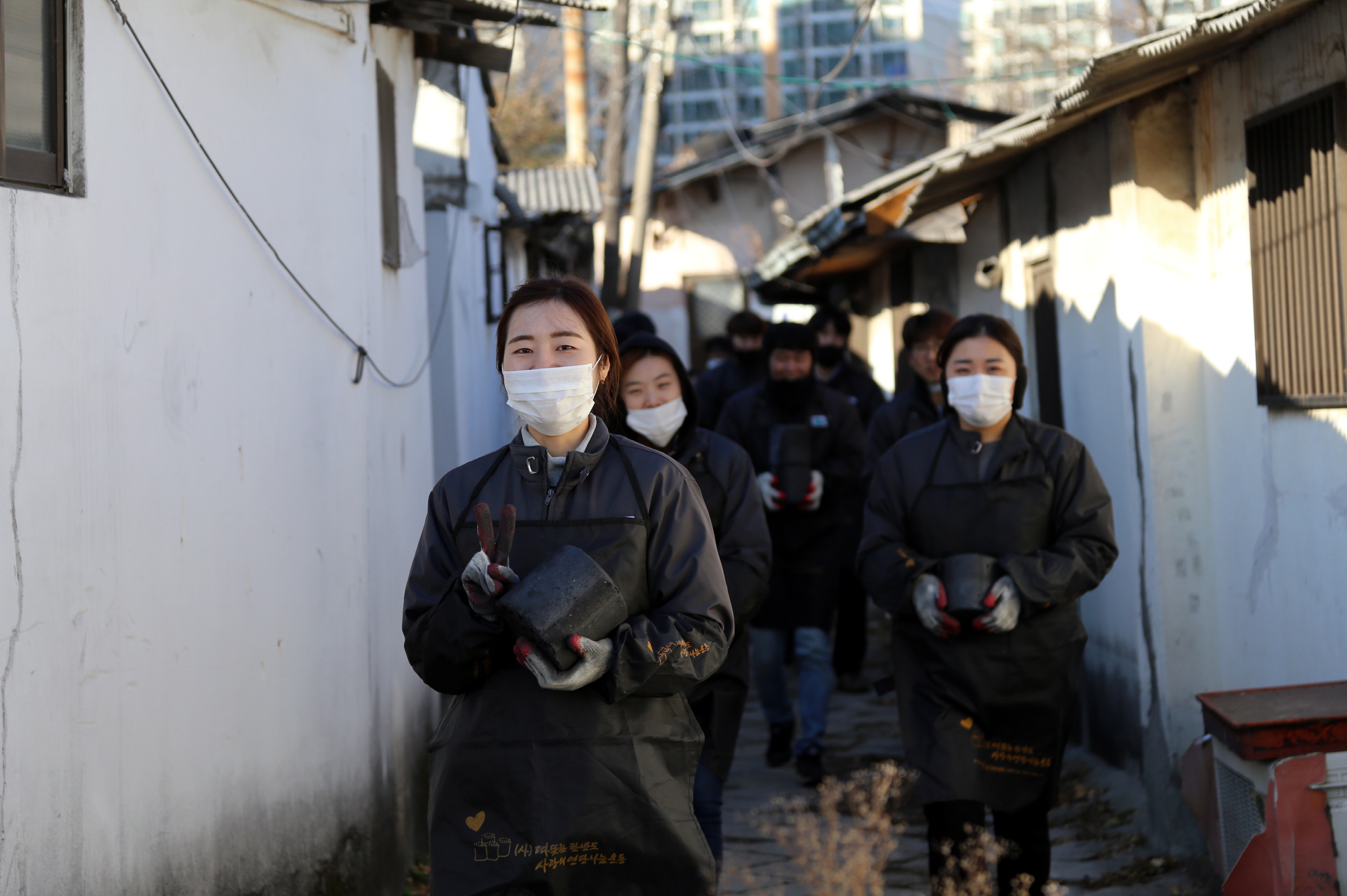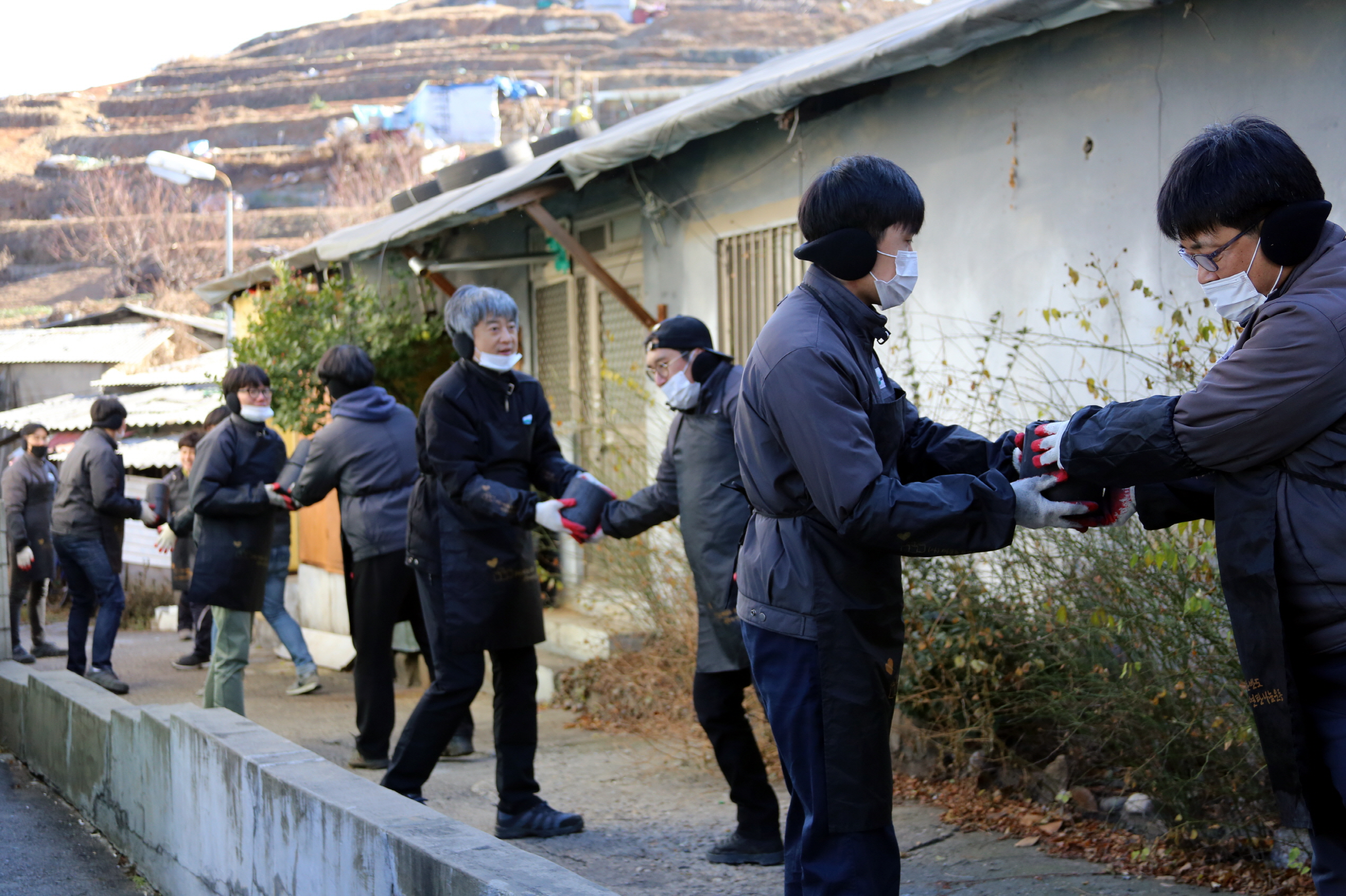 연탄 3천장을 기증하고, 그 중 일부를 직접 전달하는 시간을 갖었습니다.