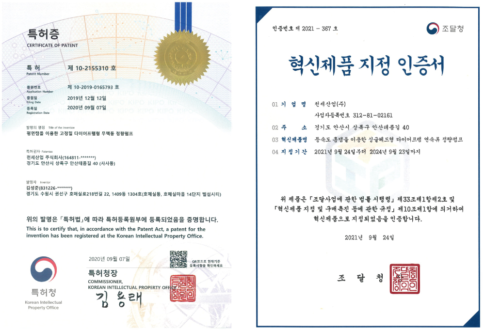 지난 8월 초, 천세산업(주)는 등속도 홈캠을 이용한 싱글헤드형 콤팩트 다이어프램 연속류 정량펌프(이하 PDS 시리즈)로
