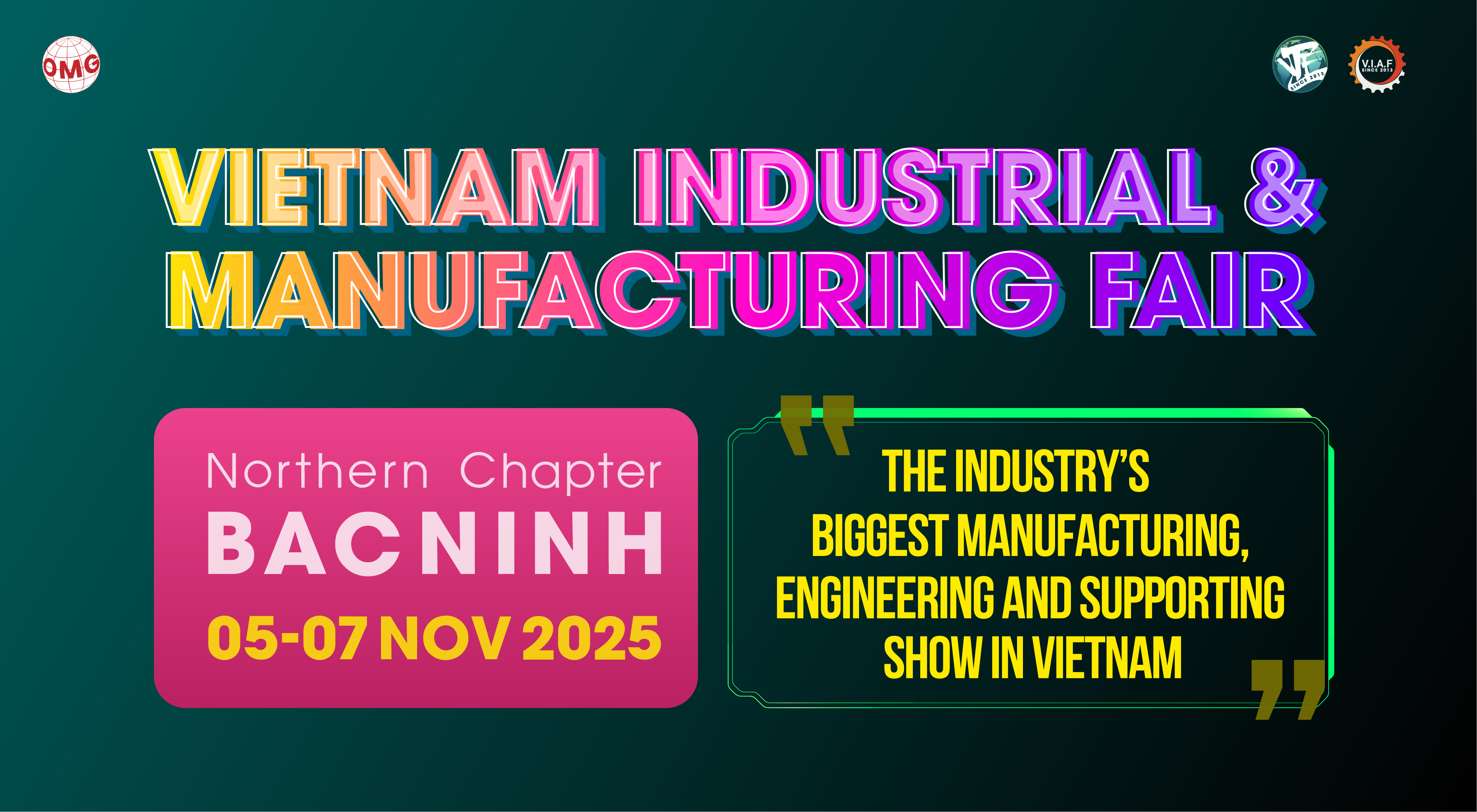 안녕하십니까 천세(주)입니다.   당사는 11 월  5일(수)부터 11월 7일(금)까지    KINH BAC CULTURAL CENTER,   박닌 에서 개최되는    VIMF 2025 BACNINH( 베트남 산업제조전 ) 에 참가합니다.   아래와 같 이 안내해 드리오니, 많은 관심과 성원 부탁드립니다.     === 아래 ===     - 전시회명  :  VIMF 2025 BACNINH( 베트남 산업제조전 )   - 전시분야  : 산업용 기계, 장비, 재료 및 액세서리,  산업 자동화 및 Industry 4.0 기술 ,  물류 및 자재 취급 ,  전자 제조 및 관련 기술  등     - 개최기간  : 2025년 11월 05일(수) ~ 11월 07일(금) / 3일간   - 개최장소  :  KINH BAC CULTURAL CENTER,   박닌   - 부스번호  :  NO. 913