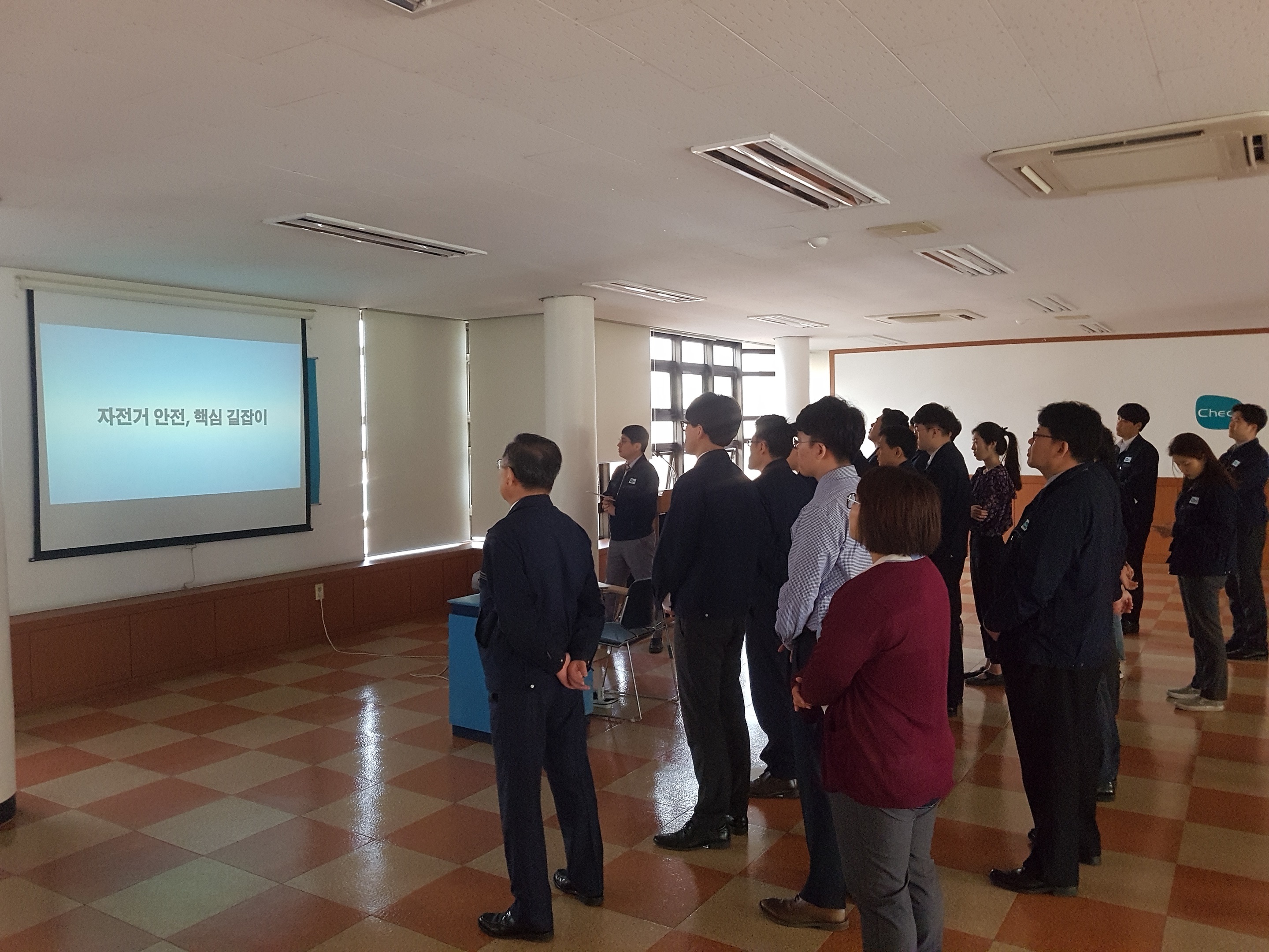 안녕하세요. 천세산업(주)입니다. 당사는 2018년 5월 15일 화요일. 본사 임직원을 대상으로 산업안전보건교육을 진행하였습니다. 주제는 자전거 안전에 관한 내용이었습니다. 주변에서 쉽게 접할 수 있는 만큼 안전에 둔감하기 마련인데요. 안전교육을 통해서 작은 곳에서도 안전문화를 실천하는 천세산업(주)가 되겠습니다. 감사합니다.