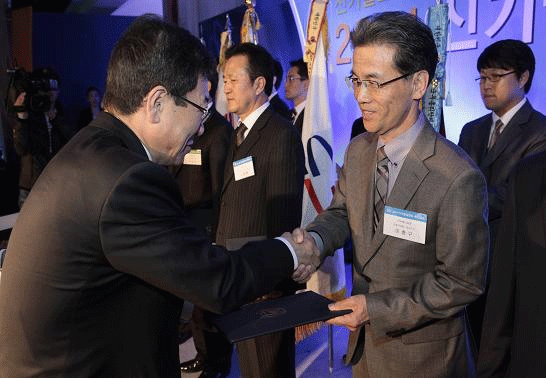 지식경제부 기술표준원(원장: 허경)은 지난 11월16일 서울교육문화회관에서 신기술제품 인증기업 공공기관 구매담당자등 450여명이 참석한가운데 2011 신기술실용화촉진대회를 개최, 신기술 실용화에 기여한 유공자(유공기업) 및 제품판로확대에 기여한 유공자(기관)에 대하여 훈, 포장 및 표창을 수여하였다. 당사(대표이사: 이충구<사진>)는 이 자리에서 신기술제품개발에 대한 실용화를 통해 국가산업발전과 기술경쟁력강화에 크게 기여한 공적을 인정받아 영예의 국무총리표창을 수상하였다. 금번수상은 화학약품처리공정에 필수적인 정량펌프를 순수국내기술로 무맥동 화 하는데 성공, 실용화함으로써 그간 수입에만 의존하던 환경, 의료, 화학, 반도체 시장에 숙원의 정량펌프 무맥동 화 시대를 열게 하였다. 이 기술은 등속도 캠 기술을 통해, 왕복 동 정량펌프에서 필연적으로 발생하는 맥동에 의한 충격현상을 근원적으로 제거 한 기술로, 종래의 맥동을 줄이기 위해 필수적으로 사용해야했던 에어챔버 및 백프레셔 밸브 등이 필요 없어짐으로써 설비비용의 절감은물론 설비의 번거로움을 단순화시켰으며 소음과 진동이 거의 발생하지 않아 환경개선과 배관파손에 의한 2차 피해도 막아주는 안전성과 경제성을 한 차원 업그레이드시킨 국내최초 신기술제품이다. 현재 국내의 무맥동 정량펌프시장은 약 1,000억 규모로 디지털환경에 발맞추어 점차 첨단화 되고 있는 환경플랜트시장의 활성화에 일조할 것으로 예상되며, 그밖에 급변하고 있는 반도체 및 화학플랜트 시장에서도 원가절감에 따른 이익창출과 수입대체에 따른 영향력이 크게 작용될 것으로 기대한다.
