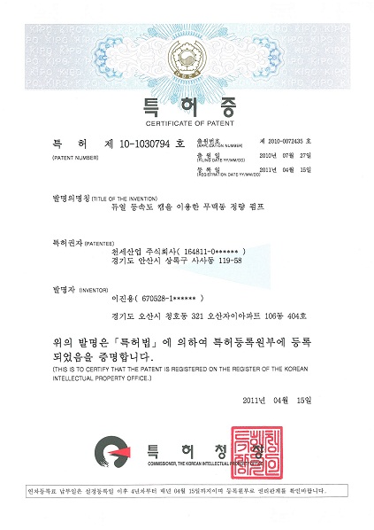 2011년 04월 15일 자로 당사의 듀얼 등속도 캠을 이용한 무맥동 정량펌프에 대한 기술이 특허 등록되었음을 알려드립니다.