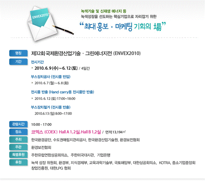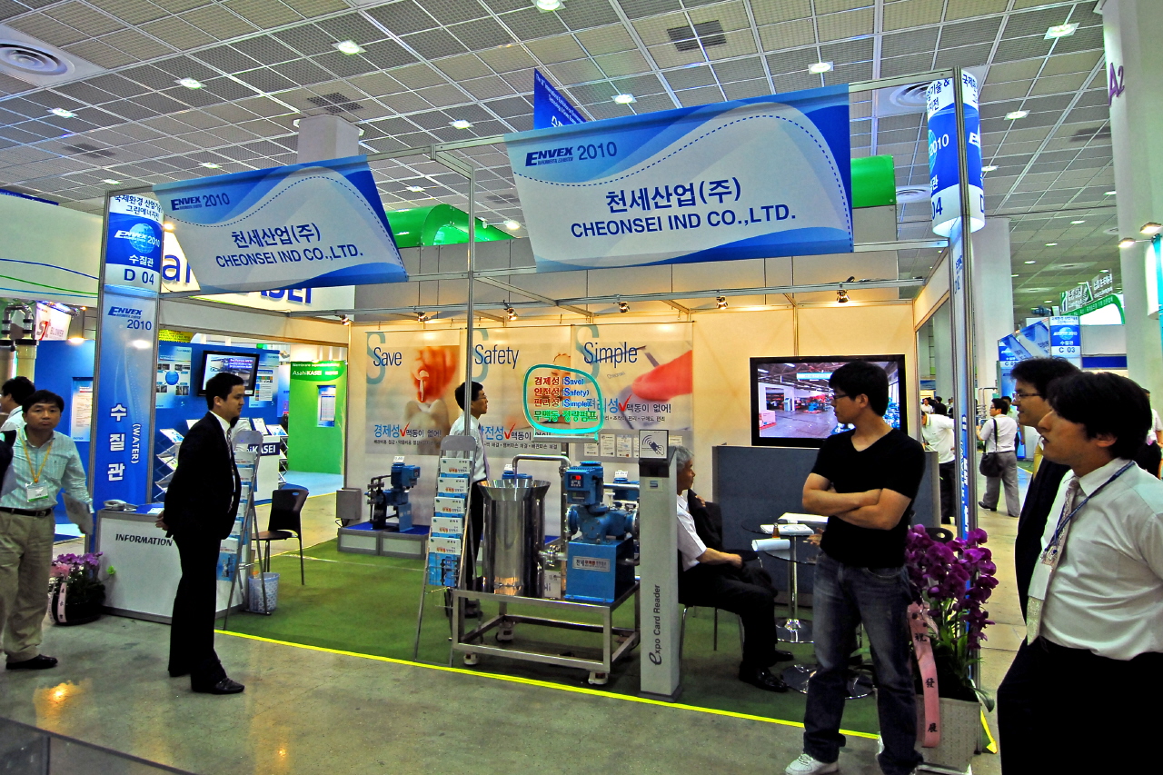 당사는 2010년 06월 09일 ~ 12일 4일 동안 제32회 국제환경전시회에 참가하여 성황리에 전시회를 마쳤습니다. 전시기간동안 천세산업 제품에 많은 관심과 성원을 보여주신 여러분들께 진심으로 감사드리며, 앞으로도 더욱 노력하여 성원에 보답할 수 있도록 최선을 다하겠습니다. -전시회 관련사진-