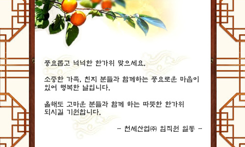 천세산업(주) 추석 연휴 안내 입니다. 2010년 9월 20일(월) ~ 9월 24일(금)