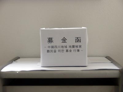중국사천지역 지진 피해 난민을 위한 모금 행사 기 간 : 2008 7월 15일 ~16일 당사는 7월 16일 중국 쓰촨성 지진으로 고통받고 있는 중국민을 돕기 위해 당사의 구호기금 및 임직원의 참여로 200만원을 중국 대사관에 전달하였습니다. 모금행사에 참여한 모든 임직원 분들께 감사드리며, 중국의 빠른 피해 복구를 바랍니다.