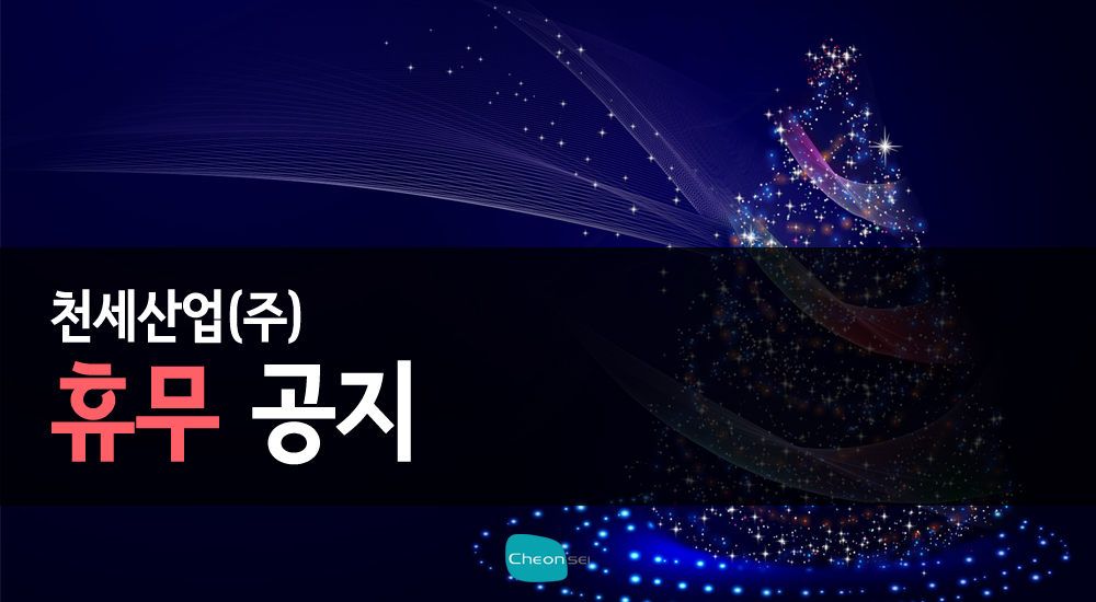안녕하세요.     천세산업(주) 입니다.    당사는 12월 24일(월)부터 12월 25일(화)까지    전 직원 공동연차 및 크리스마스로     휴무를 진행합니다.    휴무중에도 당직 근무가 진행되오니,    문의사항은 아래의 연락처로    연락 주시기 바랍니다.    감사합니다.        === 아래 ===     본          사 : 031)465-1003 반 월 공 장 : 031)493-1003  대전영업소 : 042)862-1003 부산영업소 : 051)502-1003