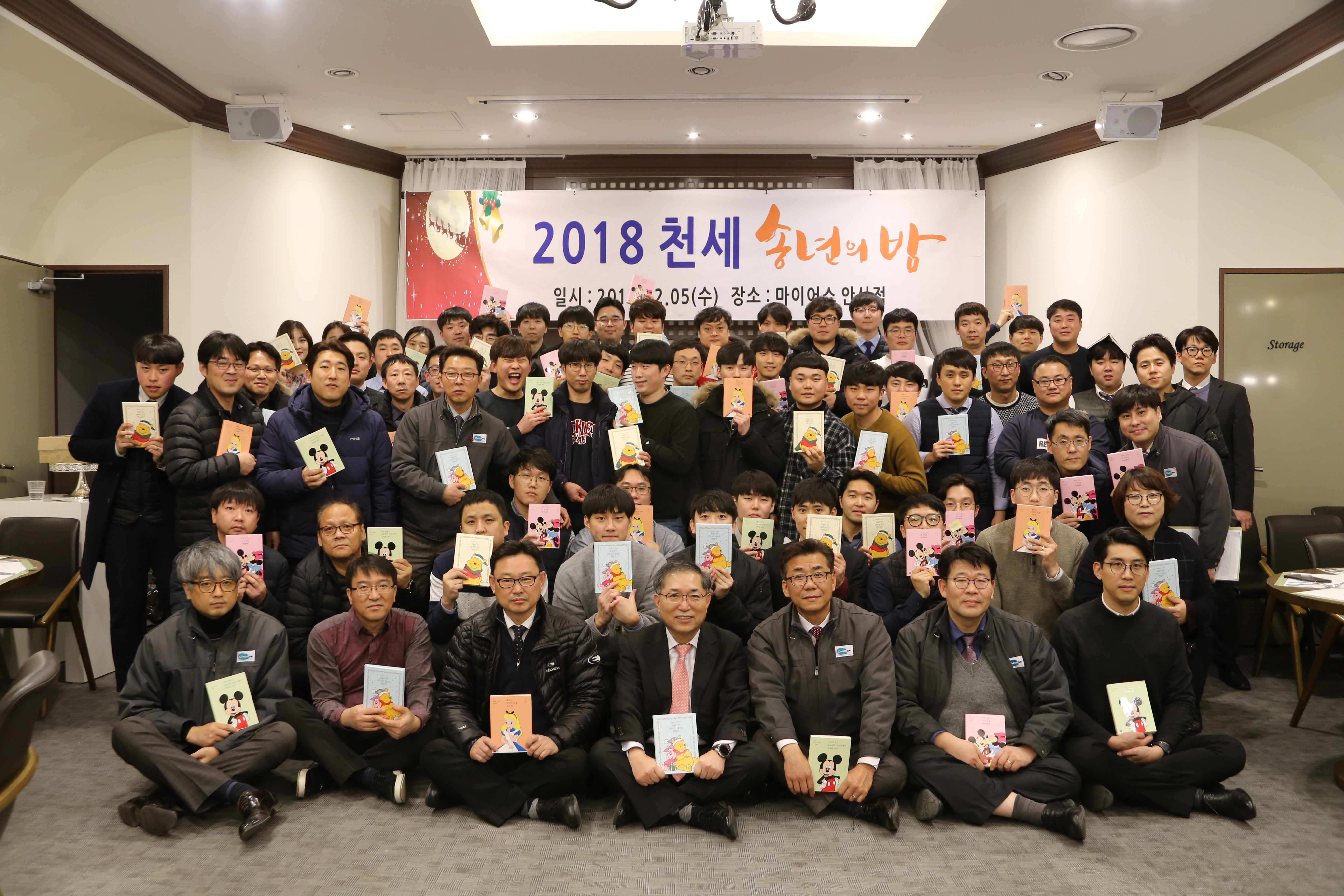 안녕하세요.   천세산업(주)입니다.   지난 12월 5일 수요일 당사는 송년의 밤 행사를 진행했습니다.   38주년 창립 기념 및 연말을 맞아    당사 임직원들이 모여 저녁 만찬 시간을 가졌습니다.   올 한 해 천세산업에 입사한 신입사원들의 자기소개 시간과   12월 생일자 축하식, 선물 증정식 등이 진행되어   한 해를 마무리하는 의미 깊은 시간이었습니다.   고객 여러분들께서도     남은 2018년 따뜻하고 행복한 연말을 보내시길 바랍니다.   감사합니다.