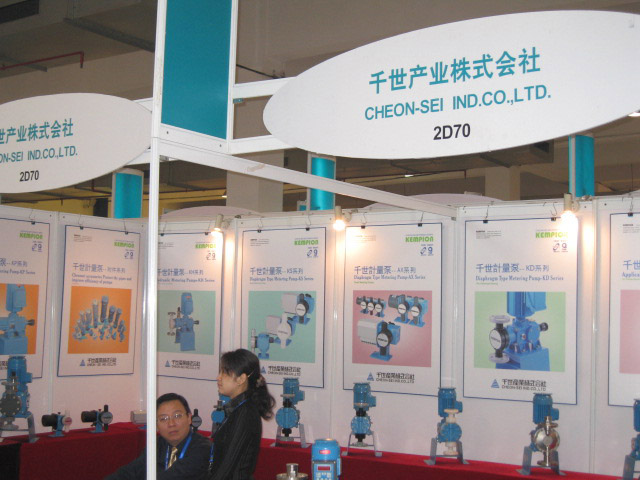 제 9 회 중국 국제급수배수처리전시회 ( China International Water Supply & Drainage and Water Treatment Technology & Equipment Exhibition) 기간: 2008.4.27~29 전시장 : Shanghai Everbright Convention & Exhibition Center 전시품목: 정량펌프