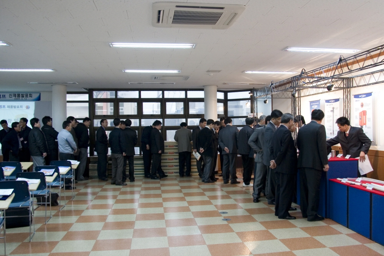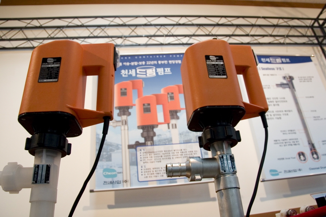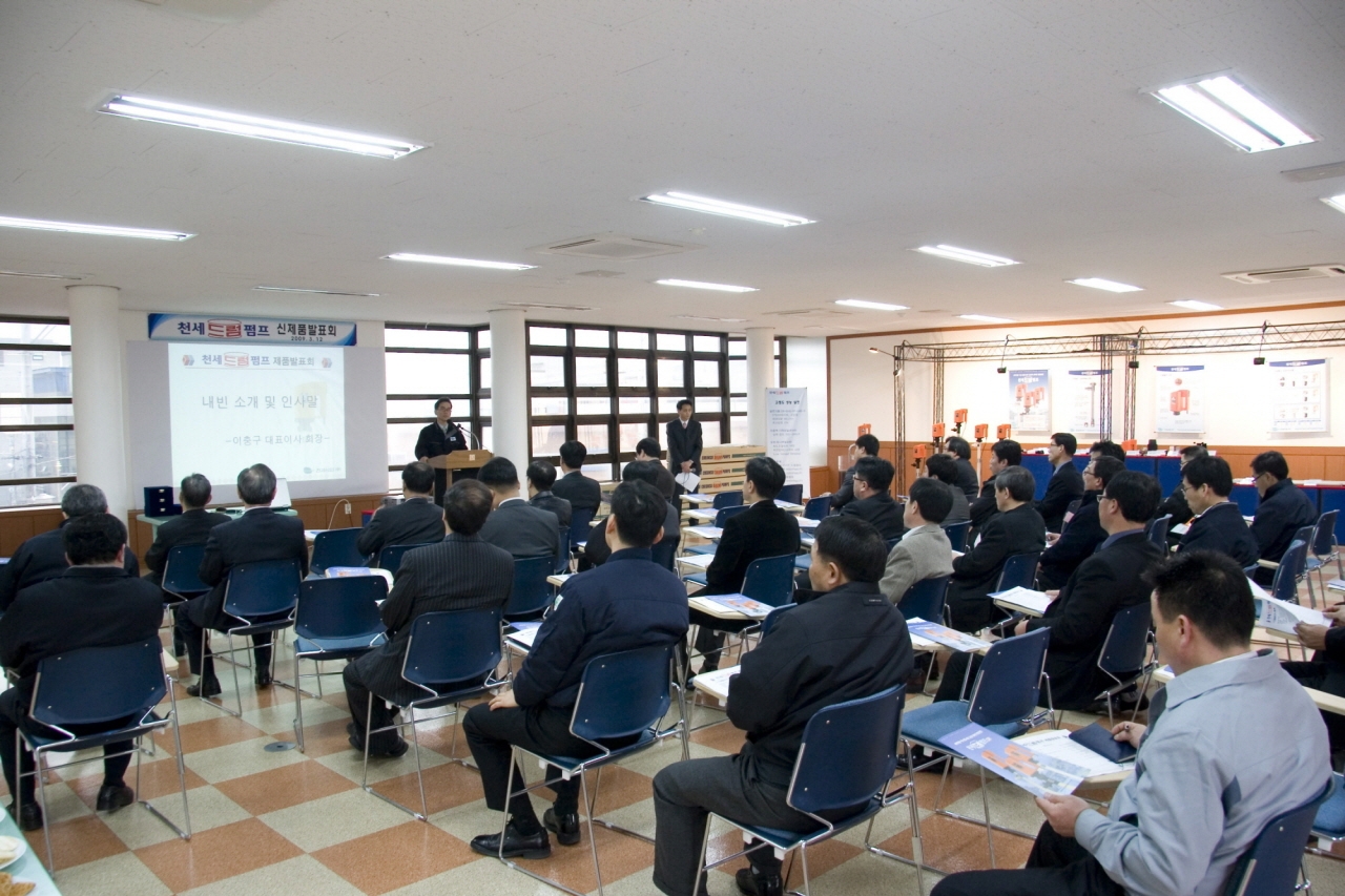 당사에서 개발완료한 "천세드럼펌프 DR시리즈"의 제품발표회 사진 입니다. 1.본사전면의 발표회 안내 현수막