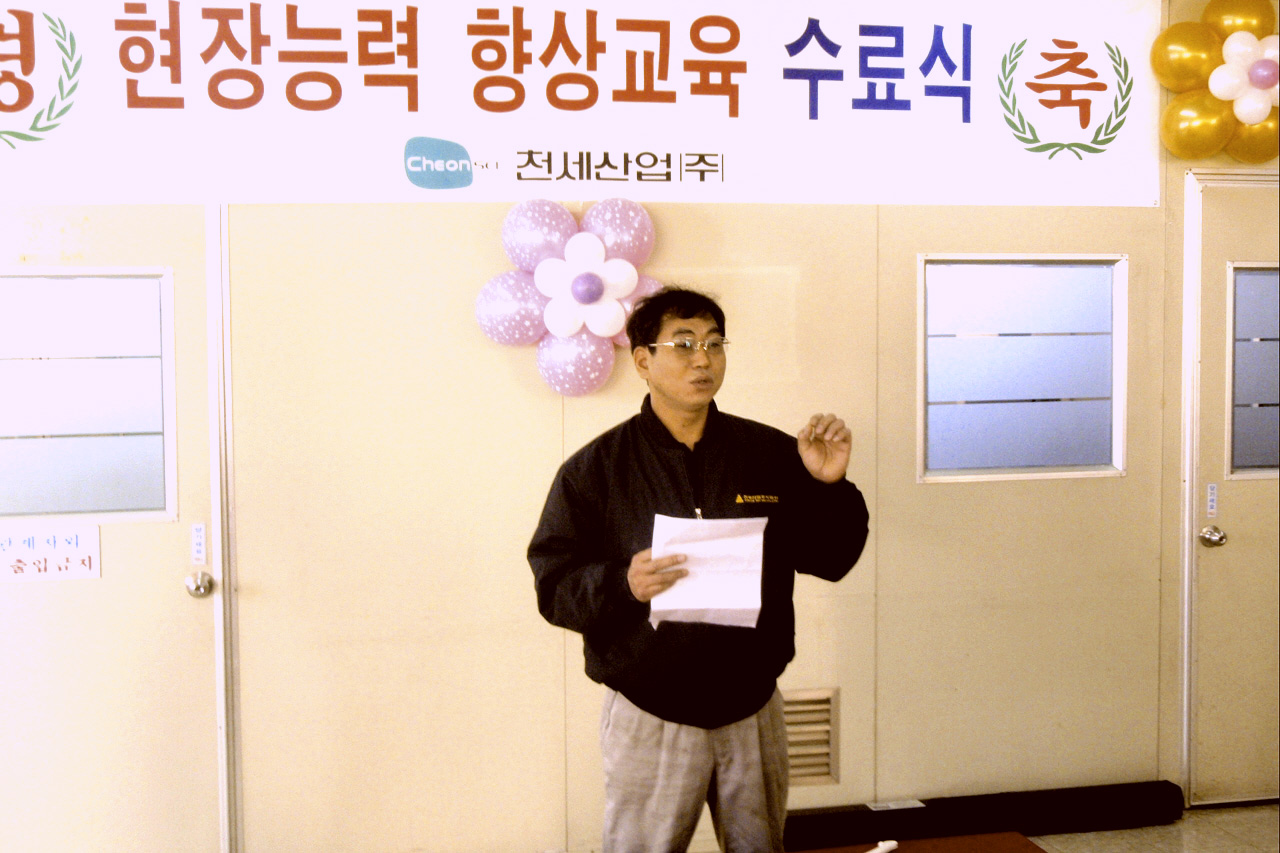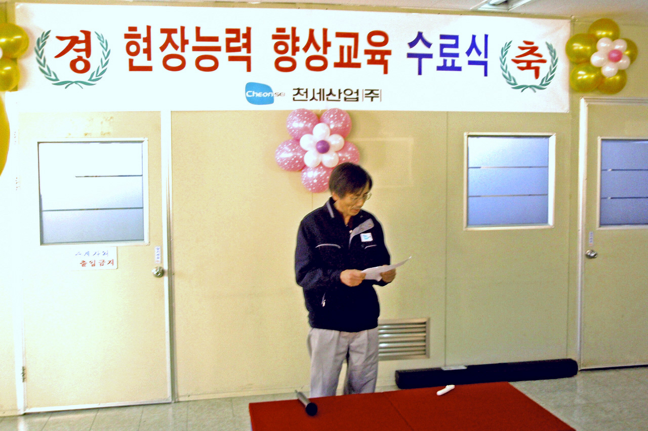 2009년 12월 14일(월) 오전, 반월공장에서 현장능력 향상교육 수료식이 진행되었습니다. '결국 현장이 답 이다'는 결론과 함께 생생한 경험담을 들을 수 있었던 소중한 시간들을 사진으로 담아 보았습니다. <사진: 기술지원팀 하명복 팀장>