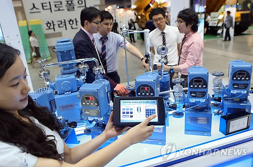 위 사진은 연합뉴스에 실린 당사 무선제어 정량펌프 사진입니다.