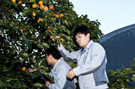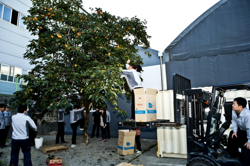 연일 화창한 가을날씨가 계속되는 가운데, 10월 23일(수) 당사 반월공장의 감나무에 열린 감을 수확했습니다.