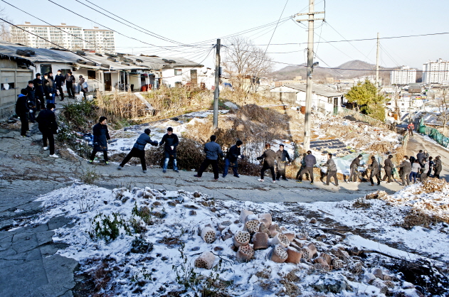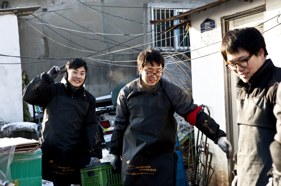 지난 12월 13일(금) 당사의 임직원들이 연말을 맞아 '사단법인 따뜻한 한반도 사랑의 연탄나눔운동 부천지부'에서 진행하는 연탄 기부 봉사활동에 참석했습니다. 사진은 당사가 기부한 3,000장의 연탄을 부천시 범박동 일대의 각 가정에 배달하는 모습입니다.