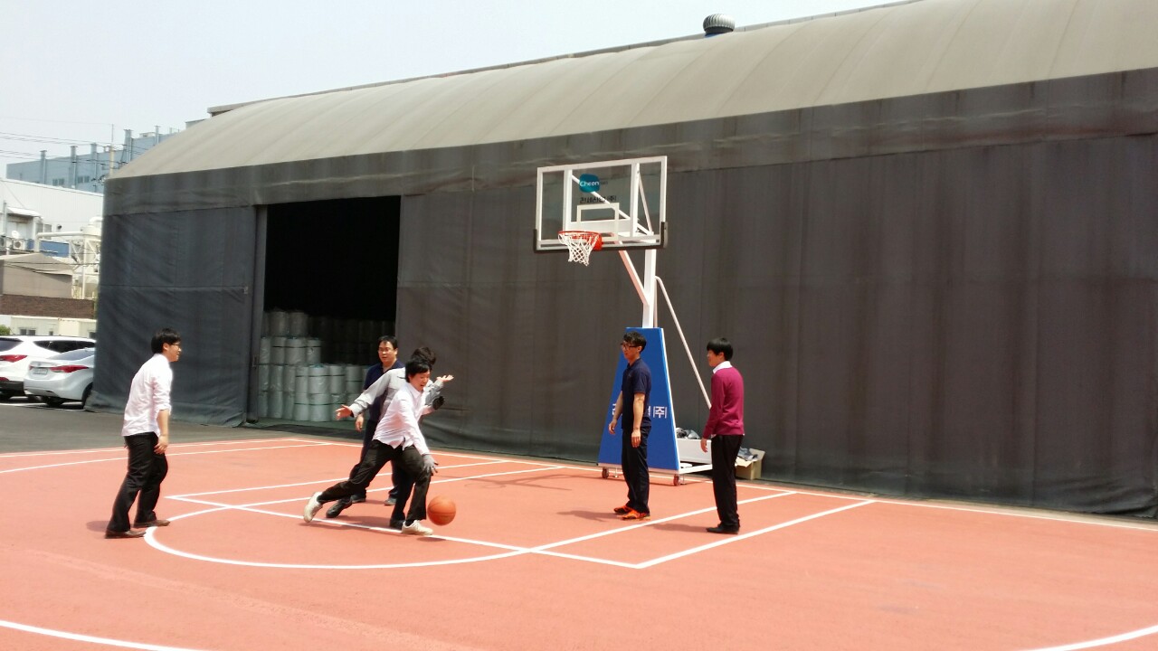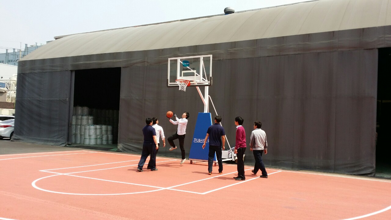 당사의 반월공장에 농구시설 설치가 완료되었습니다.