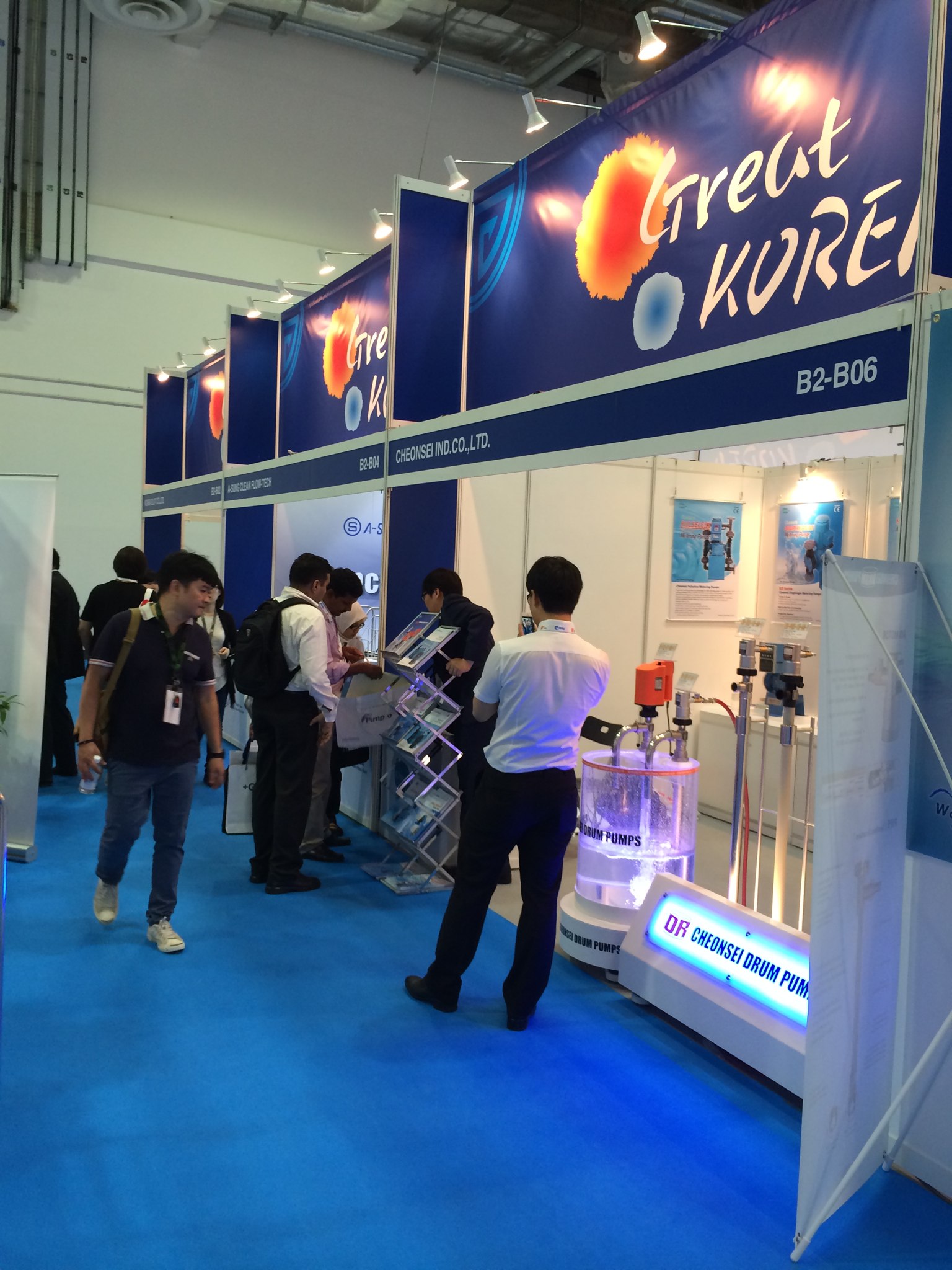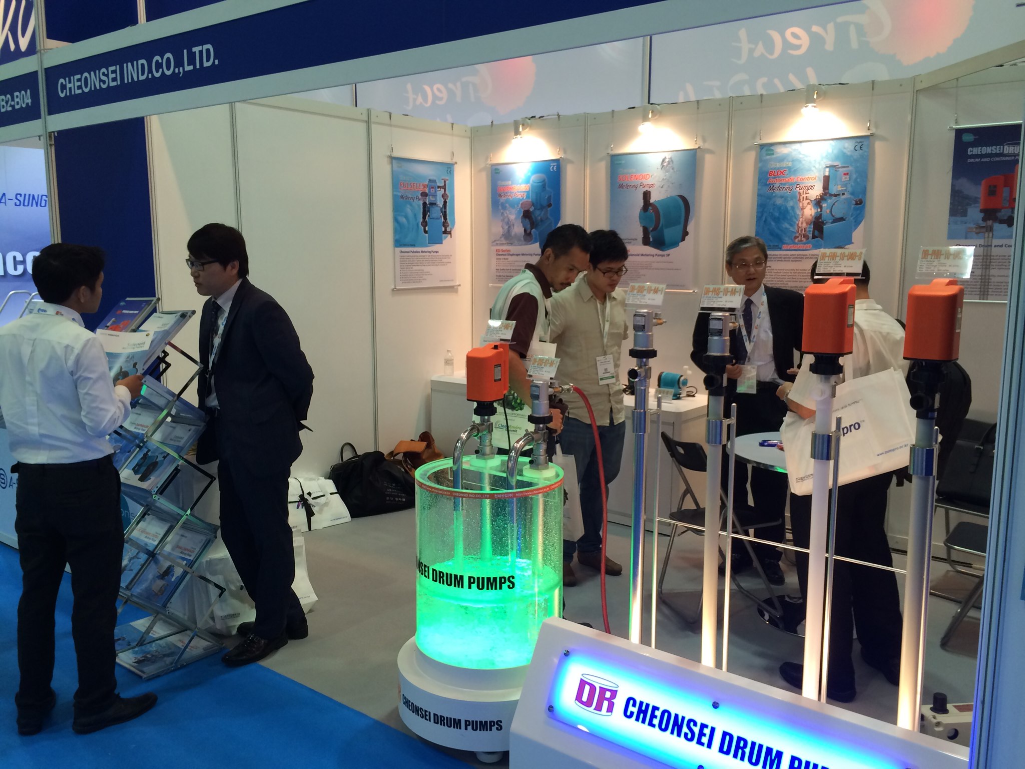 당사는 지난 6월 2일(월)부터 6월 4일(수) 싱가포르에서 개최된, 싱가포르 국제 수처리 및 환경전(Singapore International Water Expo 2014)에 참가했습니다. 당사에서 참가한 전시회는 수처리 전문 전시회로, 금번 전시회에 세계 각국의 총 195개 업체가 참가했으며, 당사는 드럼펌프, 솔레노이드 정량펌프, KD 정량펌프를 출품하여 관람객들에게 홍보했습니다.