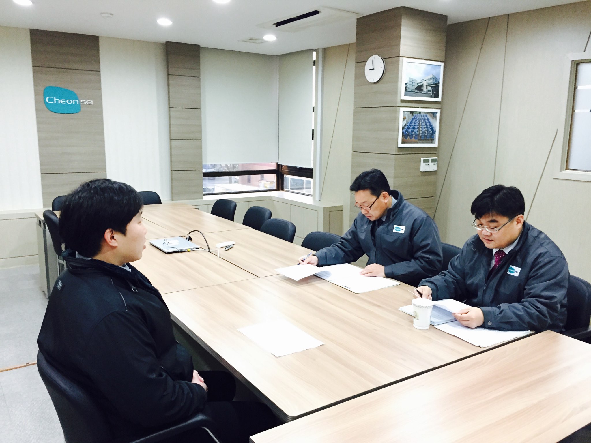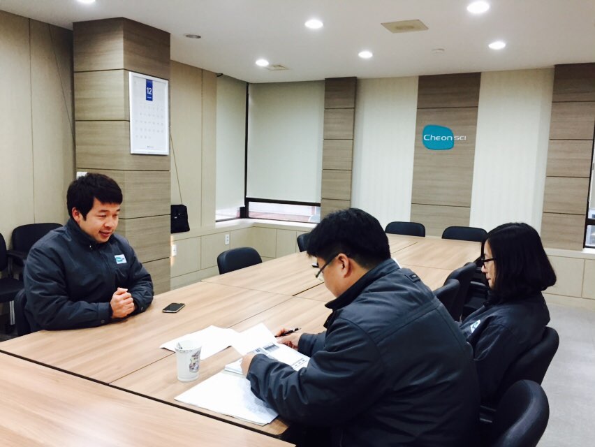 2014년 12월 11일, 당사 기술영업부 팀원을 대상으로 한 천세제품지식 Q&A 9회차(Q81~90항) 시험이 아래와 같이 진행되었습니다. 1. 장소 : 당사 2층 회의실 2. 시간 : 오전 08:45 ~ 오전 09:30 3. 대상자 : 영업1,2팀, 영업관리팀, SP특판팀, DR특판팀, 지방영업소 팀원 4. 입회자 : 기술본부 오유진 과장, 홍순만 팀장, 차혜련 팀장, 지방영업소 팀장