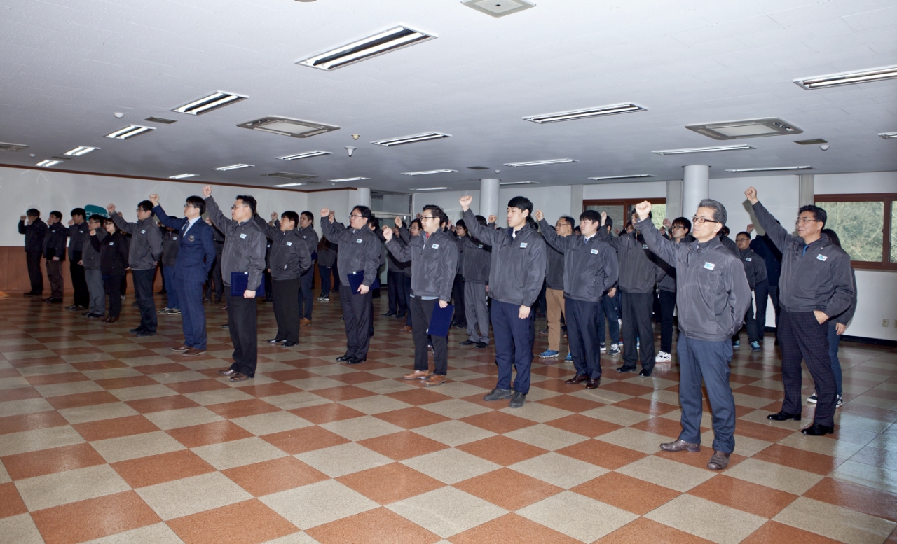 권호남 공장장의 경영보고, 구호제창, 신년하례, 사진촬영이 진행되었으며,