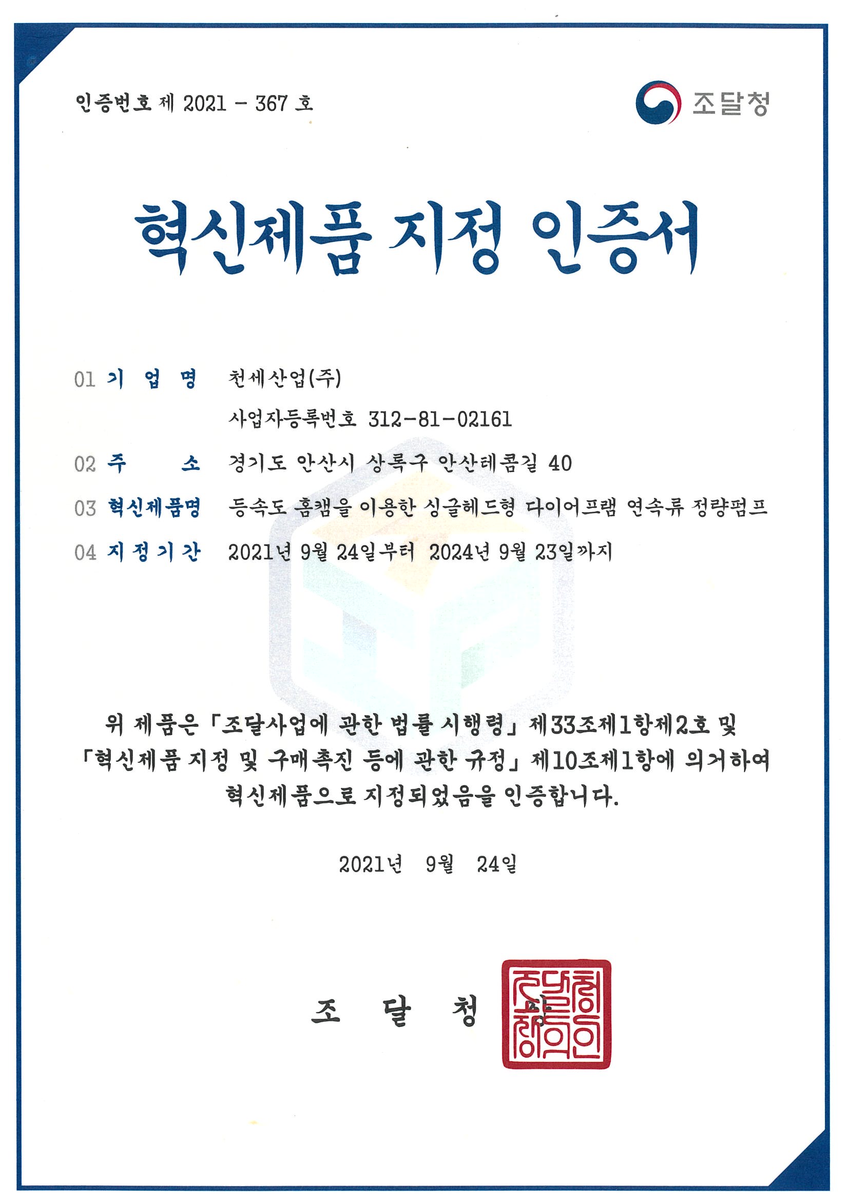 지난 9월 24일 조달청 혁신제품으로 지정되어